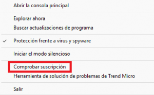 - Et mostra el menú següent, fes clic en Comprovar subscripció.