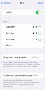 - Eduroam: Conexión segura que te permite conectarte en otras instituciones adscritas a este proyecto, sin necesidad de realizar cambios en la configuración de tu dispositivo. Esta red es especialmente útil para conectarte en otras universidades o instituciones del programa.