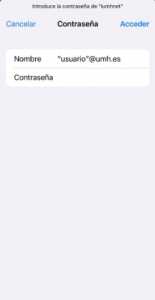 - Iumhnet: Conexión segura con cobertura exclusivamente en la red Wifi de la UMH.