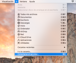 - Nos vamos al menú Ir, y seleccionamos la opción Conectarse al servidor….