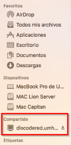 - Mientras estemos conectados, nos aparecerá el acceso en la barra lateral en Finder.