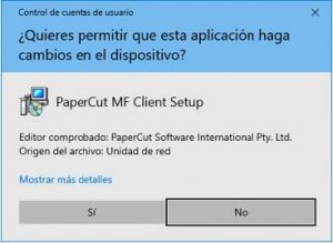 5. Autorizar cambios en el equipo (para la instalación del cliente de PaperCut), es posible que nos vuelva a solicitar el usuario y contraseña de la UMH, debemos de introducir los mismos que anteriormente: