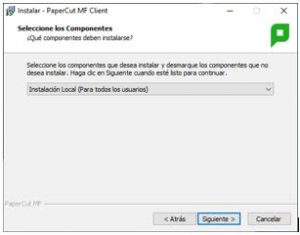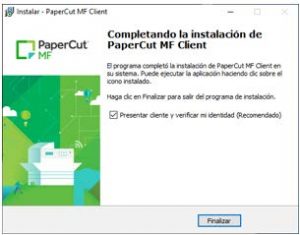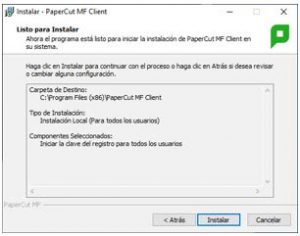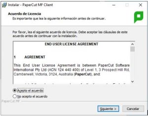7. Realizar la instalación del cliente de PaperCut con las opciones por defecto.