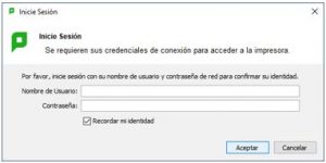 11. Una vez finalizada la instalación nos pedirá las credenciales de nuestro usuario de dominio al que se asignaran las impresiones realizadas (si se acepta guardar estas credenciales ya no es necesario volverlas a introducir)