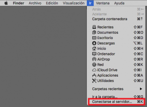 - Localiza en la barra superior la opción «Ir«, al desplegar el menú seleccionaremos «Conectar al Servidor…«:
