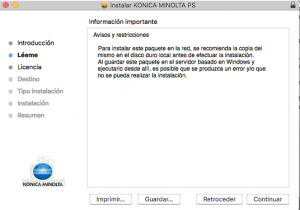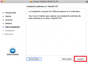4. En la ventana emergente abriremos la carpeta Konica Minolta, después bizhub c250i y por último a MacOS: