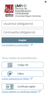 - Ahora, pulsaremos en la esquina superior derecha, sobre el logo de la UMH.